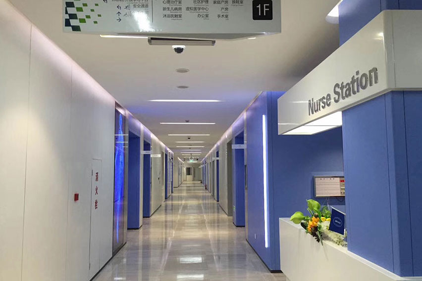 北京曹妃甸國(guó)際職教城,位于唐山市曹妃甸。學(xué)校培養(yǎng)定向入職學(xué)院,所以現(xiàn)場(chǎng)是以醫(yī)院實(shí)際操作為基礎(chǔ),包括各種儀器、醫(yī)療設(shè)備都已進(jìn)場(chǎng),在此學(xué)習(xí)的學(xué)生該享福了,條件可以稱(chēng)得上高大上;設(shè)計(jì)師在整體風(fēng)格上總共運(yùn)用了5種顏色,這種做法使現(xiàn)場(chǎng)的分區(qū)特別到位,先看看走廊的圖片:在所有的病房、科室門(mén)口都用福爾卡金屬拉絲抗倍特鑲嵌顯示屏的處理,防火板彎曲門(mén)板外設(shè)計(jì)了埡口,將病房、防火門(mén)、管井門(mén)等進(jìn)行了隱藏,站在走廊中間這...